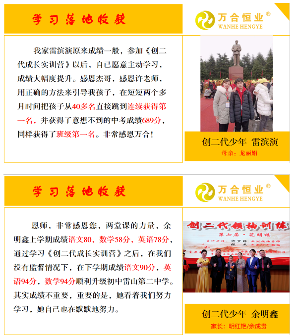 如果您有以下困惑, 可以參加【創二代-父母班】 1、 曾經的和諧親子關系,如今卻成為了劍拔弩張,橫眉冷對,冷若冰霜 ,您不知如何重啟愛與感恩,重拾幸福的親子關系? 2、 曾經自信滿滿的孩子,如今卻成為了網癮少年或青年,無數的方法用盡但無濟于事,您不知如何才能找到走進孩子世界的通道,助力孩子健康成長? 3、 曾經乖巧、可愛、懂事的孩子,如今卻變得情緒化,以自我為中心,成績往下降,甚至自卑內向,足不出戶,您不知所措,不知如何才能拯救您的孩子,找到更好的自己? 【創二代-父母班】 幫助您存在的問題找到解決方案 1、 如何跟家人進行有效的溝通,如何運用有效溝通的模式和系統進行愛與鏈接調整低谷中的關系,找到孩子叛逆的原因,培養孩子正確的信念價值觀和生存的綜合能力,并能成為孩子非常信任和欣賞的好父母。 2、 如何能進入到孩子的心靈深處,知他、懂他、支持他、成就他的健康快樂人生? 3、 如何建立充滿愛與鏈接的家庭正能量環境場,影響家人和孩子樂觀向上,勇往直前,責任擔當,成為新時代、新家庭的作品? 在這四天的時間里,能為您的實際問題找到成長的解決方案,是您全力成長養成新習慣的訓練場,是培養您和孩子擁有創二代成長實訓能力的突破場,是您和孩子新思維覆蓋老思維的轉換場。 八大成長體驗模塊,【創二代-成長實訓體驗營】越學習、越成長、越向上! 全中國,父母與孩子同一課堂一起成長的研學之旅, 體驗用心陪伴孩子的成長喜悅! 全中國,老師與自己孩子同一舞臺講授的研學課堂, 自己做到的才可以教別人! 導師簡介